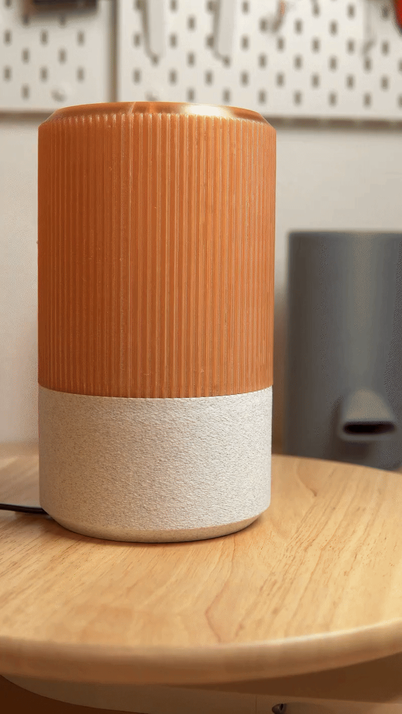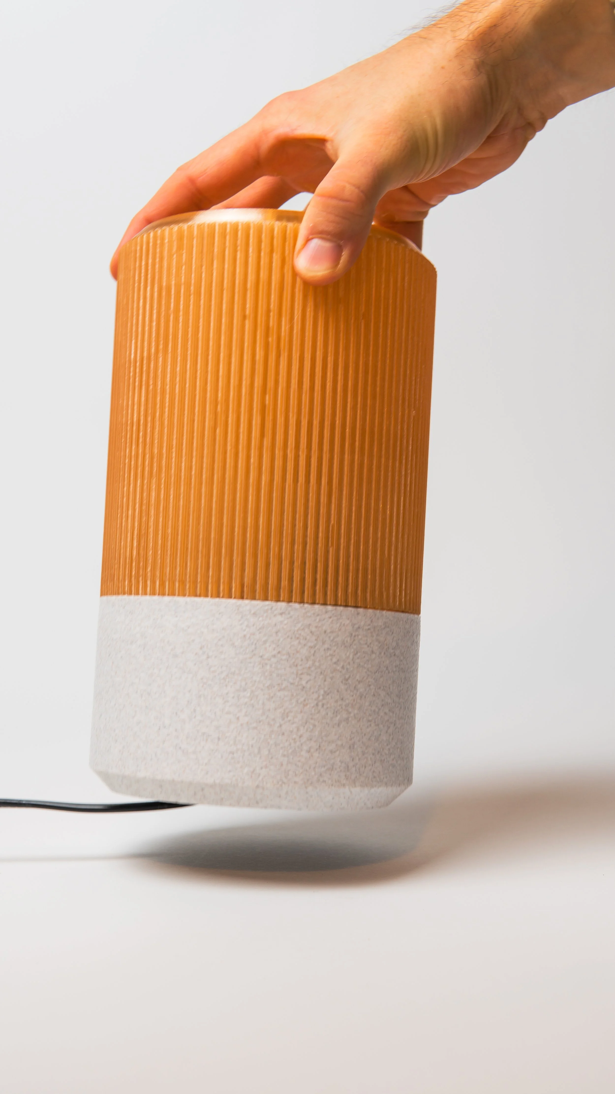 “Bill” is a timing belt shaped lamp, inspired by the pulley system used in my injection molder TARS. The name comes from Bill Devin, who was a key figure in the invetion of the timing belt.