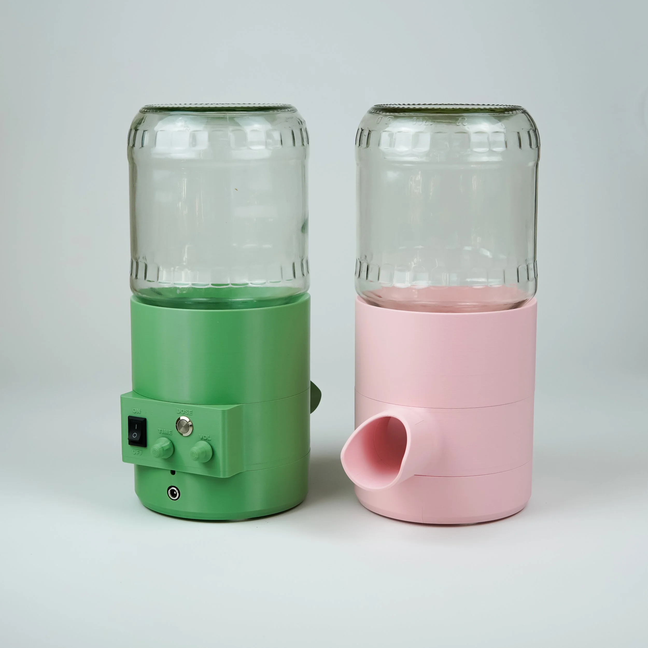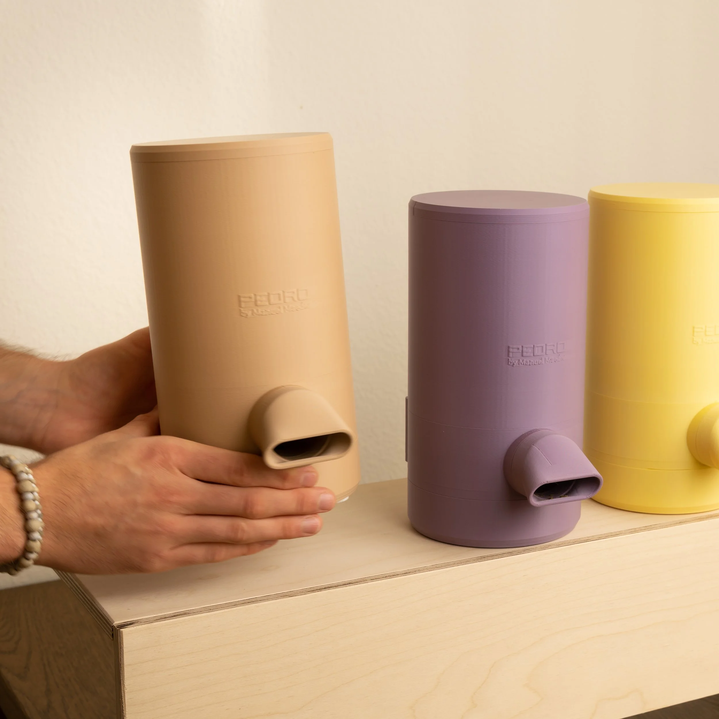 Depending on the hopper size you print, PEDRO can hold up to 2.5 kg of dry food. Smaller versions for compact spaces can hold around 800 g of dry food.